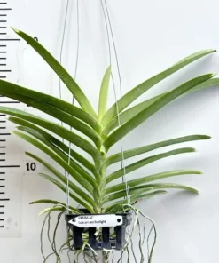 Compact Vanda habit: strap-leaf growth that suits baskets, wooden slat mounts, or net pots.