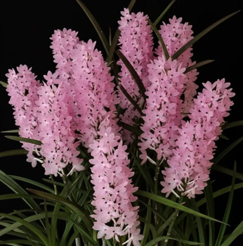 Bring home the charm of Ascocentrum christensonianum (vandaceous species). This compact plant produces upright spikes crowded with dozens of soft pink blooms, creating a fluffy, cloud-like look that stands out even from a distance. With its tidy growth and quick-rooting habit, it’s an ideal choice for collectors and first-time Vanda growers alike.