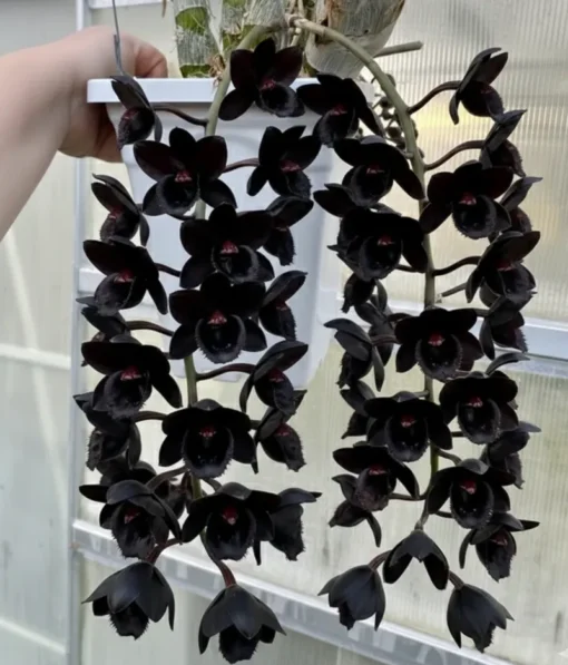 After Dark ‘Black Pearl’ is a striking and highly sought-after orchid celebrated for its exceptionally dark, almost black flowers with a velvety sheen. The blooms are borne along upright spikes, creating a bold and dramatic display that instantly captures attention.