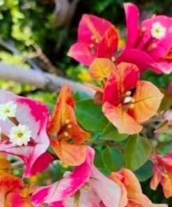 It has mixed color of pink and cream with an amazing pattern which blooms throughout the season. It is a color changing variety in bougainvillea category.