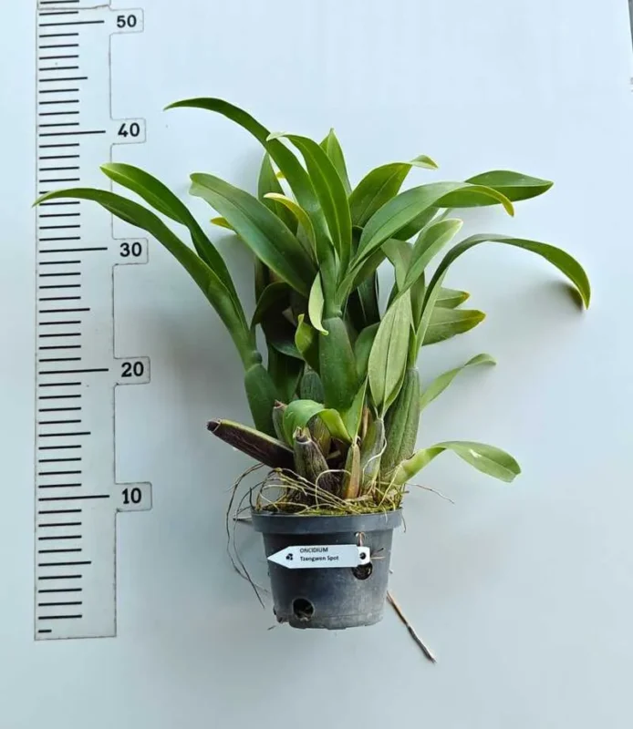 Oncidium Tzeng Wen Spots is a stunning blooming-size orchid known for its vibrant yellow petals densely patterned with contrasting brown to black spots. The plant produces upright, branched flower spikes carrying numerous star-shaped blooms that create a full, cascading effect. Its long-lasting flowers and prolific blooming habit make it a favorite for orchid collectors and decorative displays alike. This variety is perfect for adding brightness and texture to any orchid collection.