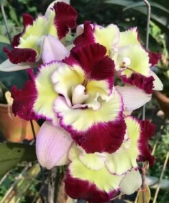 This is a beautiful multi colored cattleya orchid plant. It has shades of pink, red, yellow and cream color. Highly fragrant flowers and this hybrid is known for its irregular flowering pattern meaning it can flower anytime of the year.