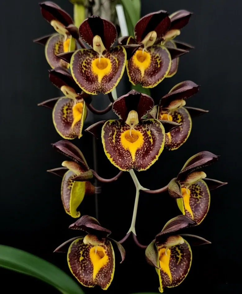 Catasetum Hybrid Gerhard Leiste is a striking blooming-size orchid admired for its unusual flower form and rich, contrasting colors. The blooms display deep chocolate-brown petals highlighted by a vivid golden-yellow lip, creating a powerful focal point in any orchid collection. Known for its bold presence and seasonal flowering habit, this hybrid is highly sought after by collectors who appreciate rare and distinctive orchids.