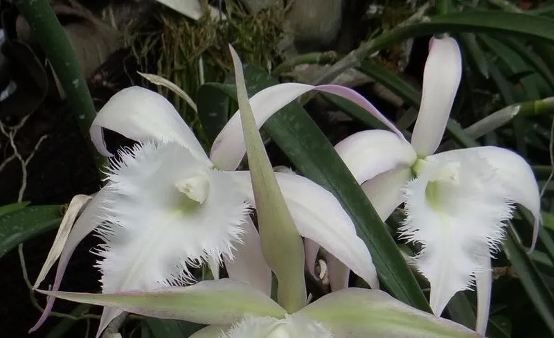 The pure white blooms are complemented by a soft green center and a beautifully fringed lip that adds texture and elegance to each flower. Many Brassavola hybrids are also known for their pleasant evening fragrance, making them especially desirable for orchid collectors.