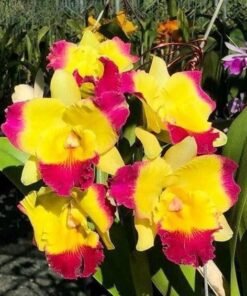 This is a cross between Rhyncholaeliocattleya Taiwan Chaffinch Gold and  Rhyncholaeliocattleya Tzeng-Wen Beauty. This amazing hybrid has big flowers and sweet fragrance. Bright yellow flowers with dark pink shades.