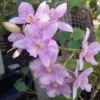Colour: Lavender-magenta petals; lip with white/yellow throat and flame-style magenta veining