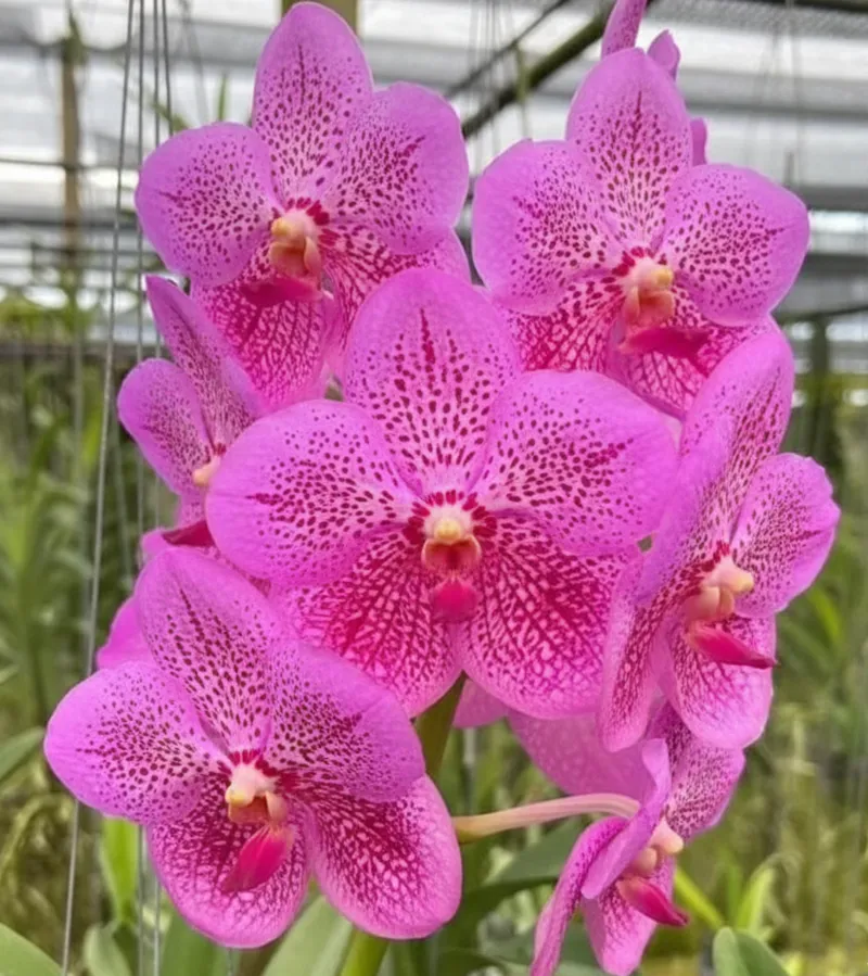 Vanda Chulaee Classic × Blitta is a premium hybrid known for its vibrant pink petals densely overlaid with deep magenta spotting. The flowers are round, full, and well-balanced, forming attractive clusters that stand out beautifully in any orchid collection.