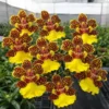 The Cymbidium Sunshine Falls – Blooming Size is a beautiful cymbidium hybrid admired for its graceful cascading flower spikes and vibrant color contrast. The blooms display soft yellow to greenish petals highlighted by deep red patterned lips that add striking detail to each flower.
