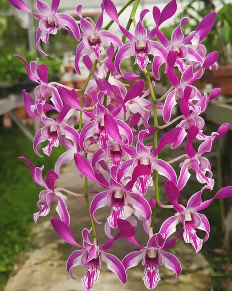 Dark Warawan is a striking orchid seedling known for its dramatic flower form and rich color contrast. The blooms feature elongated, elegant petals in deep purple tones paired with soft white highlights and a beautifully patterned lip. This variety has a graceful, slightly wild appearance that makes it especially attractive to collectors who appreciate character-rich orchids.