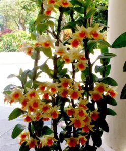 This is a hybrid cross species of Formosum and dendrobium Cruentum. Its easy to flower. This is a matured blooming size plant. Care is very similar to dendrobium and doesn’t require much attention. It is easy to grow plant. This is delivered in potted condition with media and pot.