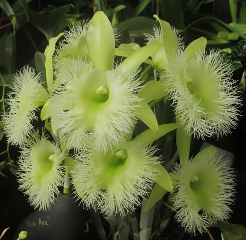 Cattleya digbyana is a legendary species orchid famous for its spectacular lime-green flowers and extraordinary fringed lip. The finely cut, feathery margins of the blooms create a dramatic and unmistakable appearance that has made this species highly influential in Cattleya breeding.