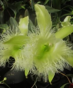 This is also called Rhyncholaelia Digbyana. This species is characterized by its over sized frilly lip with a silvery gray green foliage. Flowers are absolutely stunning and extremely fragrant. it is also the national flower of Honduras