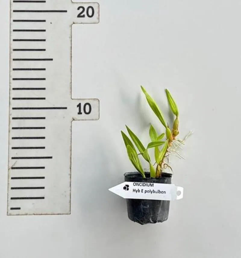 The Epidendrum polybulbon – Blooming Size is a unique orchid species admired for its delicate star-shaped flowers and compact growth habit. The blooms feature narrow yellow to golden petals that radiate outward, paired with a contrasting white lip that gives the flowers a distinctive appearance.