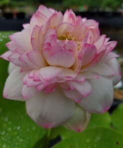 This lotus has a beautiful large white and pink mixed colored flowers and is a free bloomer.
