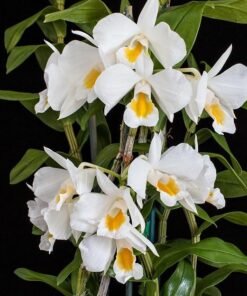 Formosum dendrobiums has very lasting flowers upto 2 months. A very unique dendrobium and a frequent bloomer. It is know for its sequential arrangement of flowers on its canes rather than on the spikes. Just like all other orchids they prefer indirect sunlight light. They also do well in bright and dim light conditions. This hybrid has white petals with bright yellow lips.