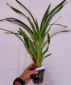 Strap-like, leathery leaves grow alternately along the pseudobulbs. -