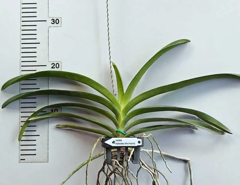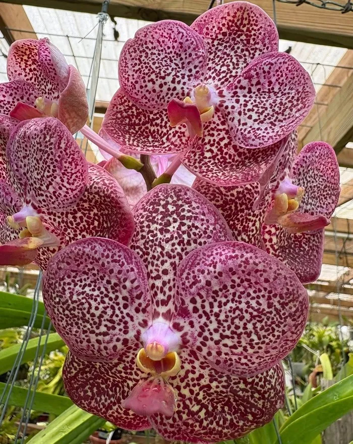 Kulwadee Spot Red KC is a striking hybrid orchid admired for its large, rounded flowers heavily patterned with deep red spotting over a lighter base. The blooms have excellent substance and vivid contrast, creating a bold and luxurious appearance that immediately captures attention.
