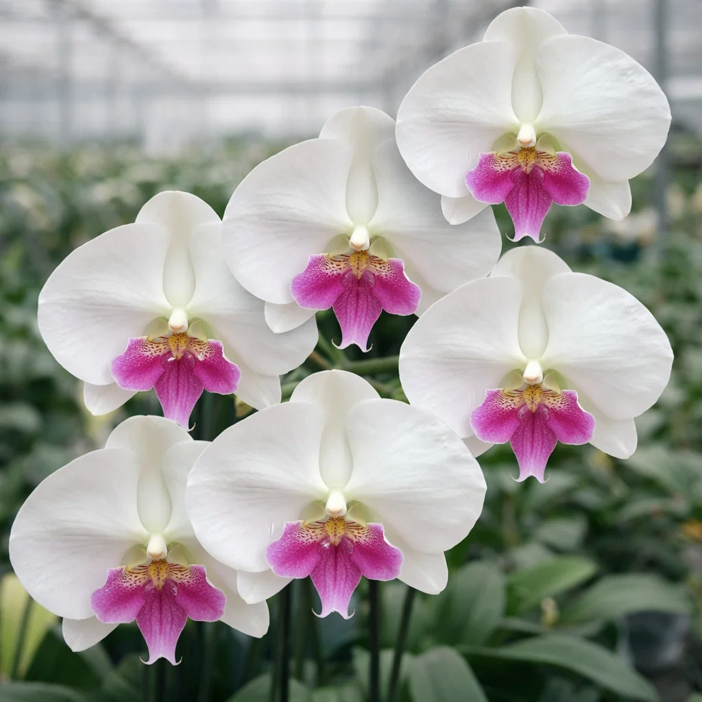 The Matured Phalaenopsis PP284 With Buds is a graceful moth orchid featuring pristine white blooms highlighted by a vivid pink-magenta center. Its soft, rounded petals create a clean and elegant silhouette, while the colorful lip adds a refined focal point. Offered as a matured plant with visible buds, this orchid is ready to bloom shortly after arrival, providing fast and satisfying floral enjoyment.