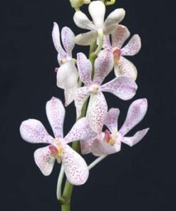 Graceful and refined, the Mokara “Rosey White” features crisp white blooms kissed with a rosy blush. With sturdy flower sprays and excellent vase life, this hybrid adds timeless elegance to floral displays, home décor, or gardens.