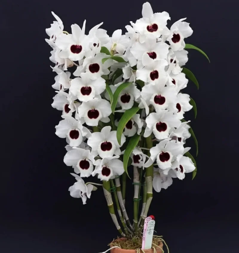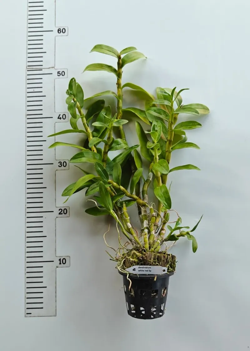 Dendrobium Nobile White Red Lip is a classic and highly admired orchid variety known for its pure white blooms accented by a deep red to burgundy lip. This ready-to-flower size plant produces clusters of elegant, fragrant-looking flowers along sturdy canes, creating a timeless and refined display. Its strong contrast and traditional Nobile charm make it a must-have for collectors, gifting, and premium orchid arrangements.