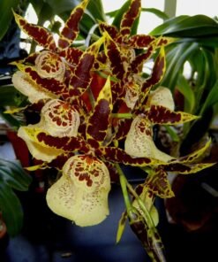 A new hybrid species of the Oncidium orchid. This oncidium orchid has yellow flowers with a few tiny red dots on the center petals and red plain shade in the remaining petals.