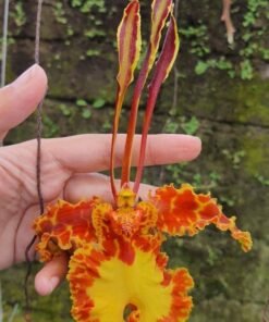 Oncidium Papilio is also called the ‘Giraffe Orchid’ or ‘Butterfly Orchid’. They are know for their continuous flower production capability. They produce flower one after another on the same spike for 10 to 15 years. So you must never cut the flower spikes. Even if the flower spike break, it will start branching below the break point and continue to flower. This is just grown like Phalaenopsis orchid. An easy to grown and flower plant that can last for many years.