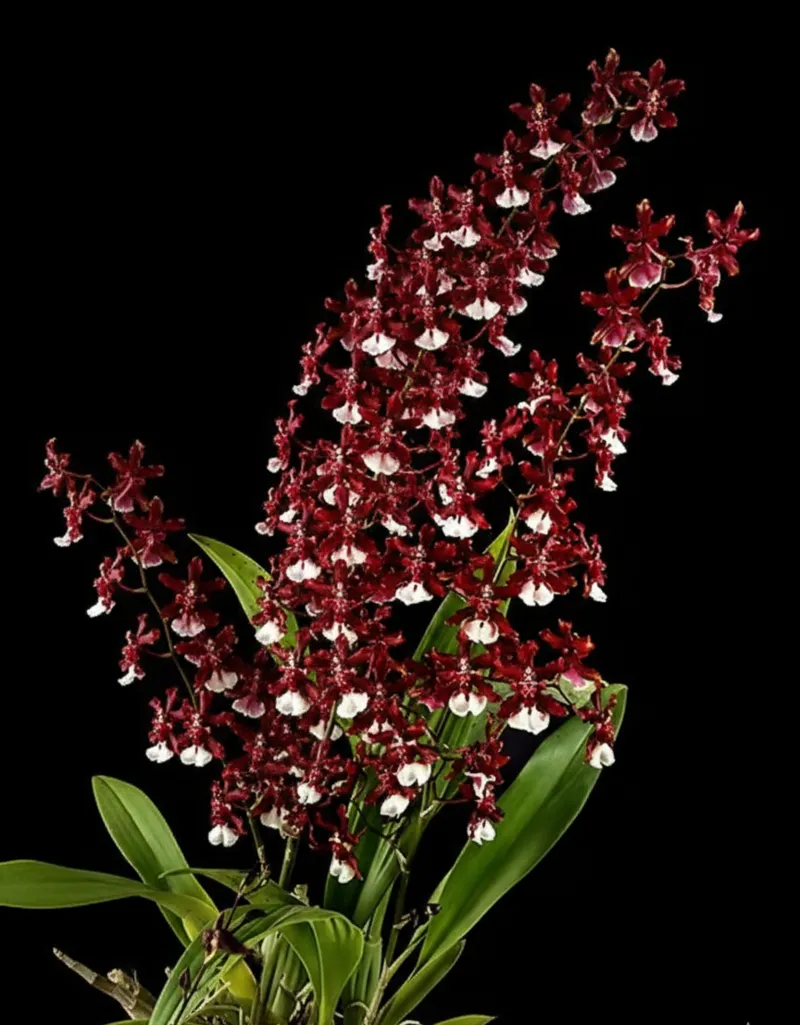One of the only exceptions is that ‘Sharry Baby’ typically requires higher light conditions than some of the other Oncidiums in order to initiate flower spikes. This higher light oftentimes causes little black dots, often compared to freckles on the human skin,to appear on the leaves. These dots are completely harmless. This is a natural characteristic of ‘Sharry Baby’ and is no cause for alarm