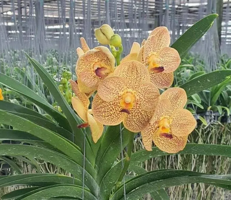 Offered as a blooming-size plant, this orchid is ideal for collectors seeking a mature Vanda capable of producing impressive flower spikes. Its robust structure and vibrant appearance make it a standout addition to any orchid collection or display.
