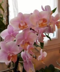 This phalaenopsis has a creamy peach flowers that blooms in thick dense clusters. They are frequent bloomers and an easy to care hybrid that can be grown indoor as well as outdoor.