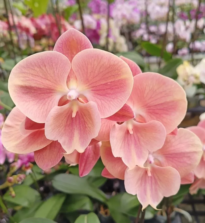 Warm peach-pink blooms with soft gradient tones