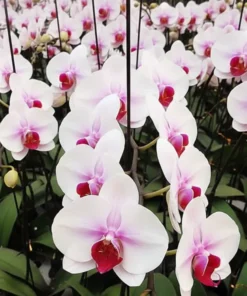Meet Phalaenopsis ‘Eve’, a picture of elegance. Expect beautifully rounded flowers with creamy-white petals softly blushed in pink/lilac and a velvety ruby lip that pops from across the room. This modern classic is friendly to beginners yet impressive enough for collectors, making it a reliable showpiece for living rooms, reception desks, cafés, or gifting.