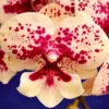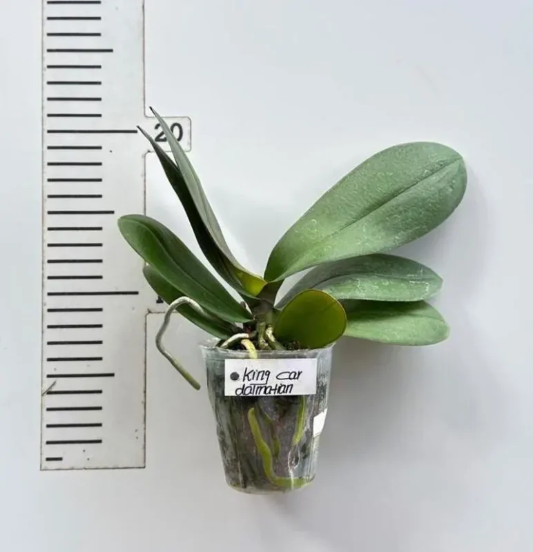 The Phalaenopsis King Car Dalmatian Orchid is a bold and artistic hybrid admired for its dramatic color pattern. Its blooms feature crisp white petals accented with vivid magenta-purple splashes and markings, resembling a unique “dalmatian” pattern.