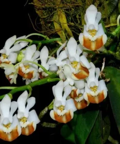 Miniature beauty: Snow-white petals contrasted by a warm caramel-orange lip—looks like a tiny owl in every bloom.