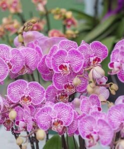 This is a fully pink striped phalaenopsis with striped lips. This phalanopsis can flower easily throughout the year. An easy to care hybrid that can be grown indoor as well as outdoor.