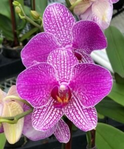 This phalaenopsis has beautiful large size pink stripe flowers that can bloom in long spikes. They can be grown indoor and outdoor.