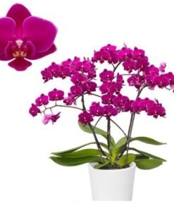 This is ready to flower size matured phalaenopsis orchid plant. This plant will be delivered in a pot planted in coconut chips. Repotting is not necessary. You can grow them indoor under a window light.