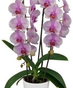 This is ready to flower size matured phalaenopsis orchid plant. This plant will be delivered in a pot planted in coconut chips. Repotting is not necessary. You can grow them indoor under a window light.