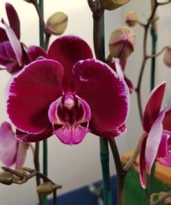 This is a beautiful deep red colored phalaenopsis with a white border. An easy to care hybrid that can be grown indoor as well as outdoor. A frequent bloomer with long spikes.