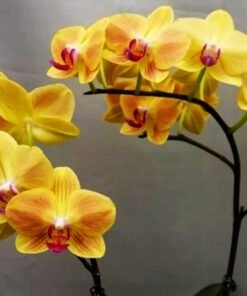 This hybrid phalaenopsis has a yellow colored petals with red veins and a pink lip. An easy to flower hybrid Phalaenopsis that requires less care. This one can produce multiple spikes of flowers and can have a large number of flowers in one single spike.