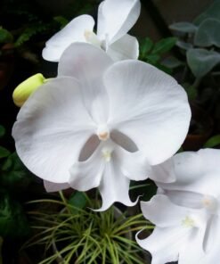 This white phalaenopsis is known for its big flowers with large white butterfly lips. An easy to care hybrid that can be grown indoor as well as outdoor. A frequent bloomer with long spikes.