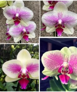 This phalaenopsis has beautiful pink spot patterns spread throughout its creamy petals. They often blooms in long spikes with a large number of flowers. Easy to take care orchid plant.