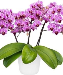 This is ready to flower size matured phalaenopsis orchid plant. This plant will be delivered in a pot planted in coconut chips. Repotting is not necessary. You can grow them indoor under a window light.