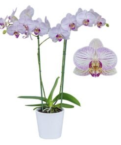This is ready to flower size matured phalaenopsis orchid plant. This plant will be delivered in a pot planted in coconut chips. Repotting is not necessary. You can grow them indoor under a window light.