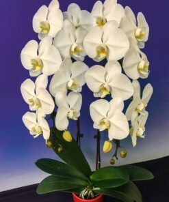 This is ready to flower size matured phalaenopsis orchid plant. This plant will be delivered in a pot planted in coconut chips. Repotting is not necessary. You can grow them indoor under a window light.
