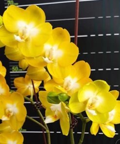 This is a gorgeous bright yellow Doritaenopsis with a white center. Doritaenopsis is a cross between a Phaleanopsis orchid and a Doritis orchid. Sogo Moimi is an orchid hybrid developed by Sogo in the year 2002. This is a cross between stuartiana and Sogo Pride. An easy to care hybrid that can be grown indoor as well as outdoor. A frequent bloomer with long spikes.
