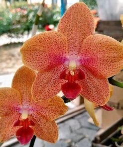 This is a beautiful orange phalaenopsis with dark red spots spread through out the petals. An easy to flower hybrid Phalaenopsis that requires less care. This one can produce multiple spikes of flowers and can have a large number of flowers in one single spike.