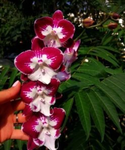 This gorgeous phalaenopsis is also known as butterfly orchids due to its unique flower shape. Tinker Bell’s kiss is a rare hybrid with dark red flowers and big white lips . An easy to care hybrid that can be grown indoor as well as outdoor. A frequent bloomer with long spikes.