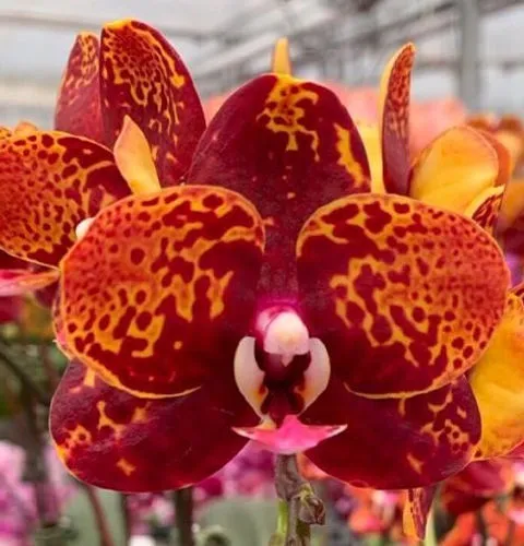 Phalaenopsis Reyoung Lava is a dramatic and highly sought-after moth orchid distinguished by its fiery lava-red blooms splashed with glowing golden-yellow patterns. This blooming size plant produces bold, round flowers with excellent substance and color intensity, creating a striking focal point in any orchid display. Its exotic coloration and elegant Phalaenopsis form make it ideal for collectors, premium gifting, and statement décor.