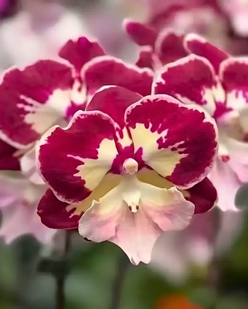 The Phalaenopsis Tinkerbell Orchid is a colorful and playful hybrid known for its striking multi-tone blooms. Its flowers feature rich red patterns over creamy white and soft yellow tones, creating a lively and eye-catching display.