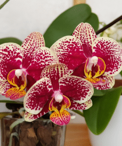 This is a medium size Phalaenopsis orchid plant. This plant will be delivered in a pot planted in coconut chips. Repotting is not necessary. You can grow them indoor under a window light.